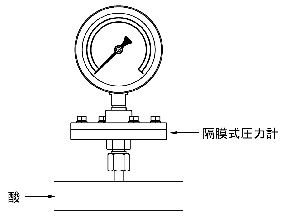 受圧媒体の耐食性がブルドン管材質に適していない場合は、隔膜式圧力計をご使用下さい。